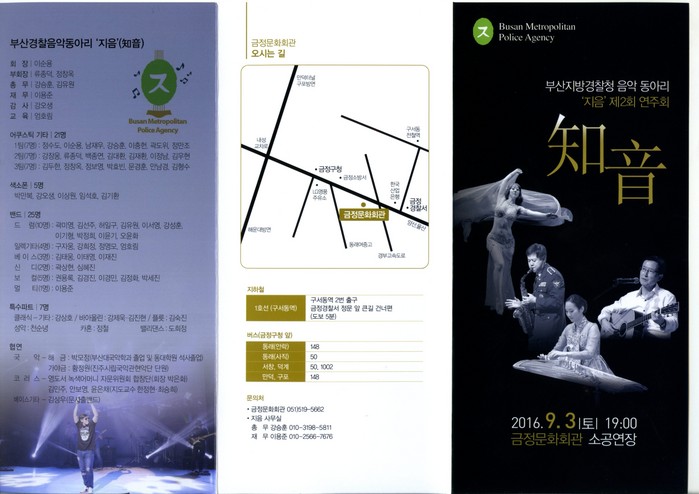 ‘지음’은 부산경찰청의 경찰관‧일반직공무원 등 60여명으로 구성됐으며 바이올린, 성악, 색소폰, 통기타, 락밴드, 밸리댄스 등 재능 있는 직원들을 선발, 다양한 장르를 아우르는 종합적인 음악동아리이다.