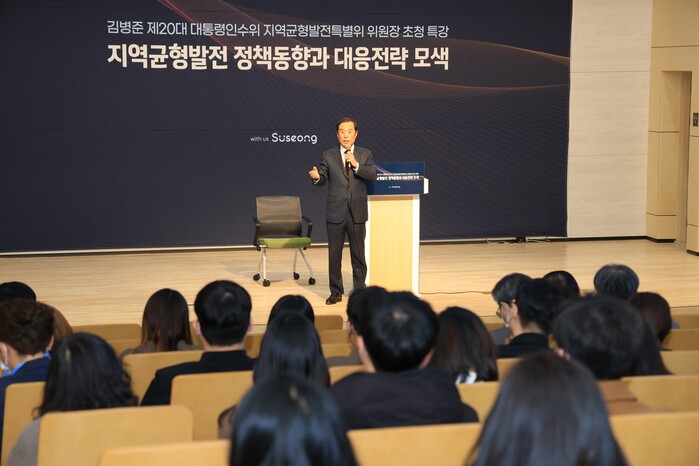 [로컬세계=박세환 기자] 대구 수성구는 지난 7일 스마트시티지원센터에서 김병준 제20대 대통령직인수위 지역균형발전특별위원장을 초청해 ‘지역균형발전 정책 동향과 대응 전략 모색’이란 주제의 특별강연을 개최했다고 12일 밝혔다.