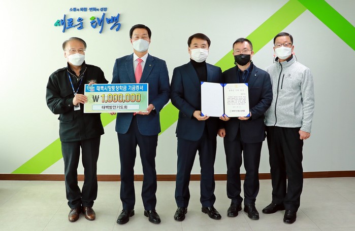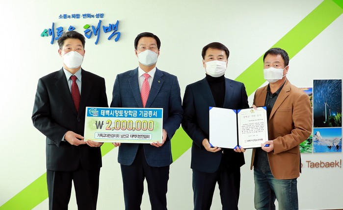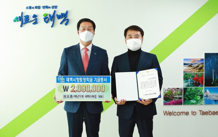 [로컬세계 박상진 기자]강원 태백시는 11일 백년가게 태백식육점 대표이자 기독교대한감리회 남선교 태백지방 연합회, 태백발전 기도회의 회장을 맡고 있는 권오종씨가 회원들과 함께 시청을 찾아 향토장학금을 기탁했다고 밝혔다.