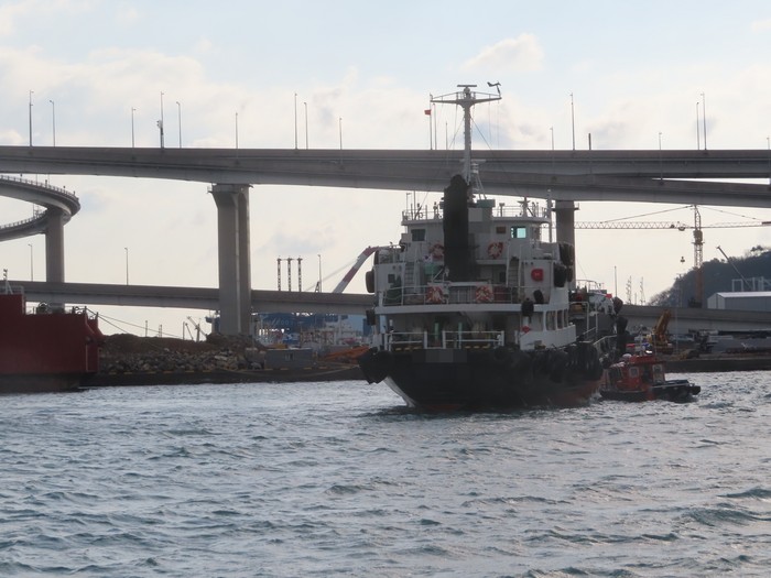 | ▲부산항 대교 인근 좌초 선박.(부산해양경찰서 제공) |