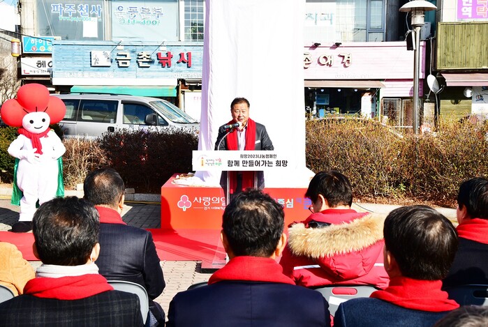 | ▲ 김경일 파주시장이 사랑의 온도탑 제막식 기념사를 하고 있다. 파주시 제공 |