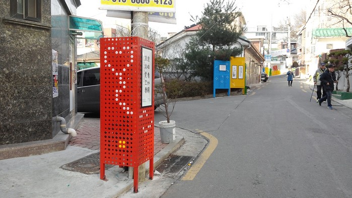 문학의 거리 안쪽으로 들어서면 타공판과 전신주 가림판 곳곳에 걸려 있는 구로서예가협회와 한묵회의 기증 작품들과 기하학적 도형, 문자 장식물이 눈길을 끈다.