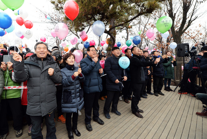 [로컬세계 이명호 기자]동대문구(구청장 유덕열)는 2017년 새해를 맞아 1일 배봉산 전망대에서 새해기념 타징, 희망풍선 날리기, 일출감상 등 주민들과 함께 희망찬 새해를 시작했다.