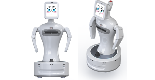 ▲한국암웨이가 도입한 인공지능(AI) 로봇 ‘드리미’의 정면/측면 사진. |