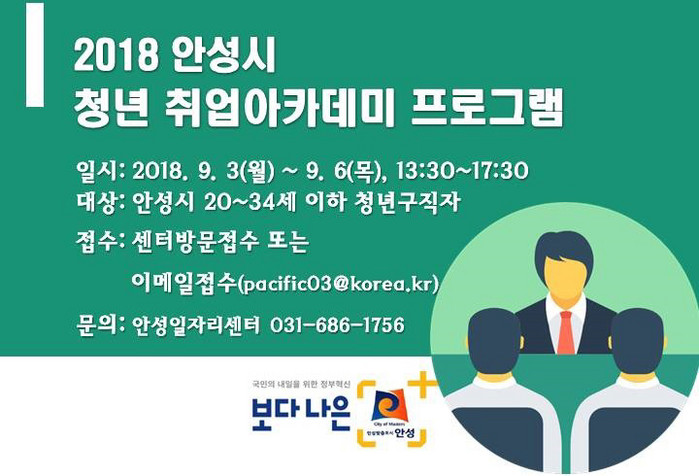 신청 및 프로그램 관련 사항은 안성일자리센터 블로그(https://blog.naver.com/anseongjob)나 전화(031-686-1756)로 문의하면 된다.
