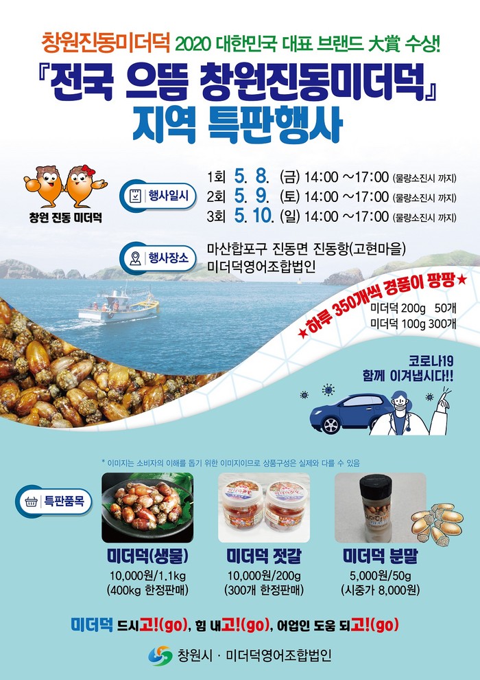 특판행사는 드라이브-스루 및 현장 방문 판매를 병행하여 운영되며, 1kg에 1만원인 미더덕은 1kg에 100g을 더해 1만원으로 판매된다. 미더덕젓갈은 200g 1만원, 미더덕 분말은 50g에 3000원 할인된 5000원으로 판매된다.