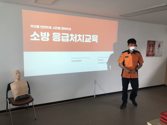 교육 내용은 ▲119신고 요령 ▲화재 발생 시 대피방법 ▲심폐소생술 이론교육 ▲선한 사마리아인법 등을 교육했다. 화재나 심정지 등 응급상황이 발생했을 때 골든타임을 놓치면 안 된다는 내용을 강조했다.