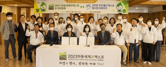 [로컬세계 창원=정판주 기자] 경남 하동세계차엑스포조직위원회는 지난 29일 하동 야생차박물관에서 2023하동세계차엑스포 성공 개최 및 2030부산월드엑스포 유치와 관광산업 발전을 위한 업무협약을 체결했다고 30일 밝혔다.
