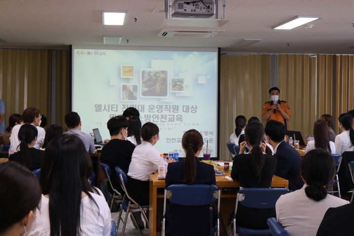 [로컬세계 맹화찬 기자]부산 해운대소방서는 23~24일 양일간 해운대의 새로운 랜드마크 LCT건물 전망대 직원 110명을 대상으로 맞춤형 소방안전교육을 실시했다.