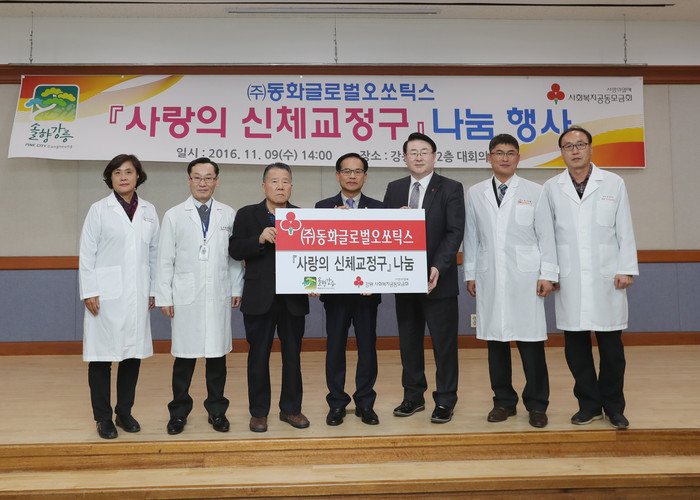 [로컬세계 정연익 기자]㈜동화글로벌오쏘틱스는 9일 몸이 불편한 강릉시 관내 저소득층에게 신체교정구 150족(4500만원 상당)을 기탁했다.
