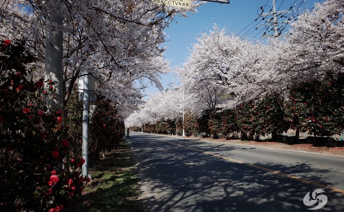 | ▲가포에서 덕동으로 향하는 길에 있는 동백과 벚꽃. |