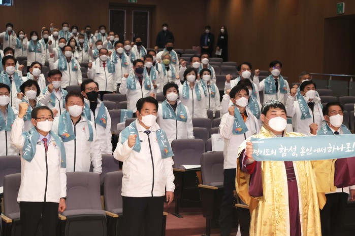 경기 용인시는 6일 용인시청에서 ‘2022년 경기도종합체육대회 조직위원회 발대식’을 열었다. 발대식에는 백군기 용인시장을 비롯해 국회의원, 경기도의원, 용인시의원, 체육 및 유관기관 관계자 등이 참석했다.