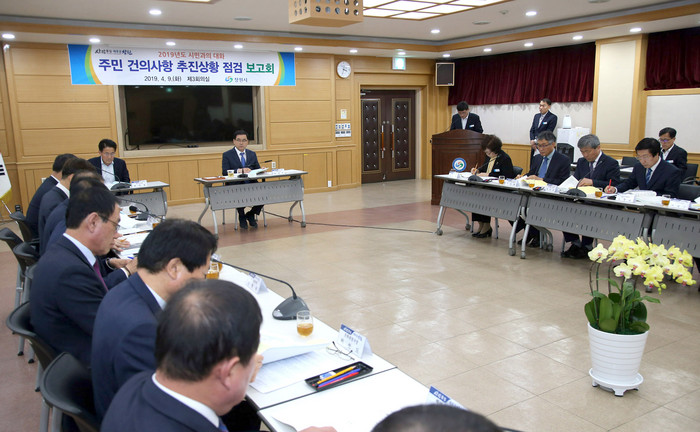 | ▲창원시는 9일 시청 제3회의실에서 2019년 창원경제 부흥을 위한 ‘시민과의 대화’에서 접수된 280건의 시민 건의사항에 대한 추진상황 점검 보고회를 열었다.(창원시 제공) |