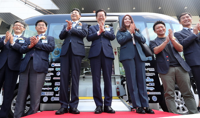 이날 이재명 도지사는 판교 제2테크노밸리 기업지원허브앞 광장에서 기념식을 갖고 김정렬 국토교통부 제2차관, 조광주 경기도의회 경제과학기술위원장 등과 함께 '제로셔틀' 시범운행에 탑승했다.