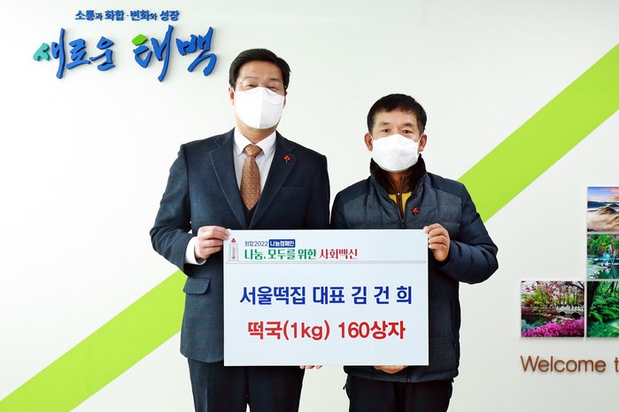 [로컬세계 박상진 기자]서울떡집(대표 김건희)은 17일 태백시청을 방문해 저소득층 가구를 위한 설날맞이 떡국떡 160KG(112만원 상당)를 기탁했다.