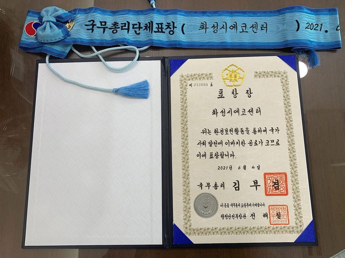 화성시에코센터는 이번 국무총리표창은 “환경교육에 참여한 많은 시민들의 관심과 해양쓰레기 줍기, 자원봉사 활동을 한 시민들의 열정, 자원재활용에 참여한 시민들의 실천 및 캠페인에 따른 결과물”이라고 강조했다.