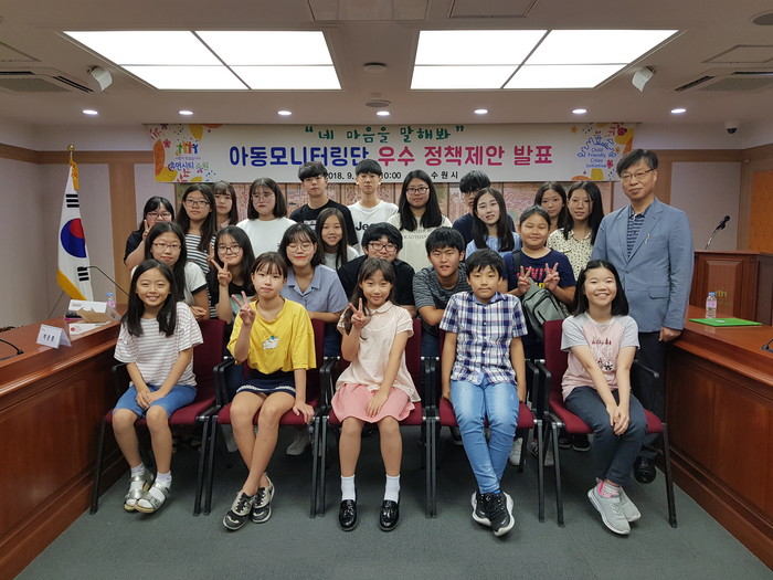 [로컬세계 이명호 기자]경기도 수원시는 8일 시청 상황실에서 수원시 아동모니터링단 30여 명이 참가한 가운데, ‘네 마음을 말해봐!’를 주제로 우수 정책 제안 발표회를 가졌다.