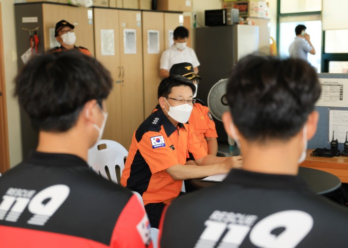 이흥교 본부장은 "찌는 듯한 무더위 속에서도 시민들의 안전을 위해 노력하는 대원들의 노고에 감사드린다”며, “휴가철을 맞아 해수욕장을 찾는 피서객들의 물놀이 사고 방지에 최선을 다해주길 바라며, 아울러 대원들의 건강관리는 물론 코로나19 감염 예방을 위한 방역지침도 잘 지켜주길 바란다“고 말했다.