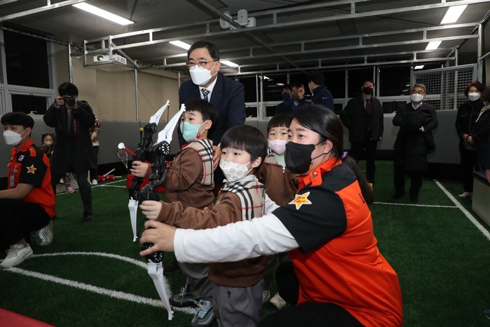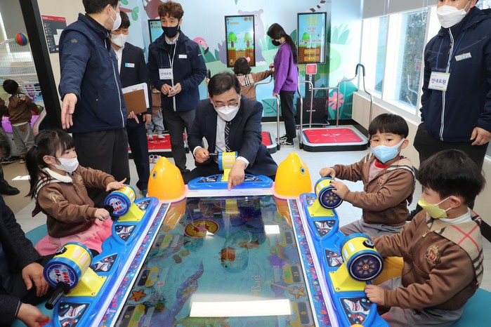 내서어린이체육관은 2019년 11월 착공을 시작으로 총사업비 20억원을 투입해 연면적 627㎡, 지상2층 규모로 건립됐다. 내부에 다양한 체육활동을 할 수 있는 다목적체육관, 휘트니스실과 VR스포츠실, ICT융복합스포츠실 등 메타버스 시대에 걸맞는 최첨단 가상현실 체험공간도 조성됐다.