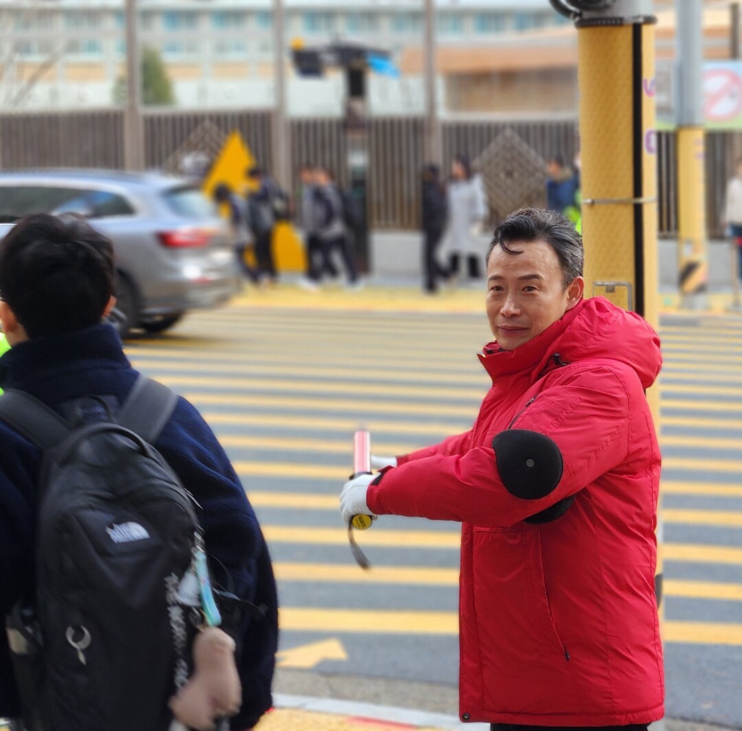 부산 남구의회 서성부 의장이 매주 초등학교 앞에서 교통지도 봉사에 나서며 어린이 교통안전 문화 확산에 앞장서고 있다.