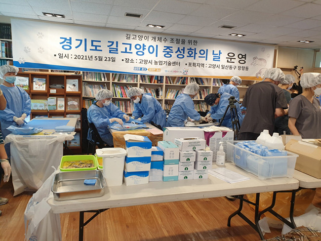센터는 지난 21일부터 이틀간 길고양이를 포획했고 23일에는 고양시 농업기술센터 가와지쉼터에서 51마리를 중성화했다. 24일부터 26일까지는 고양시 장항동 일대에 방사를 할 예정이라고 밝혔다.