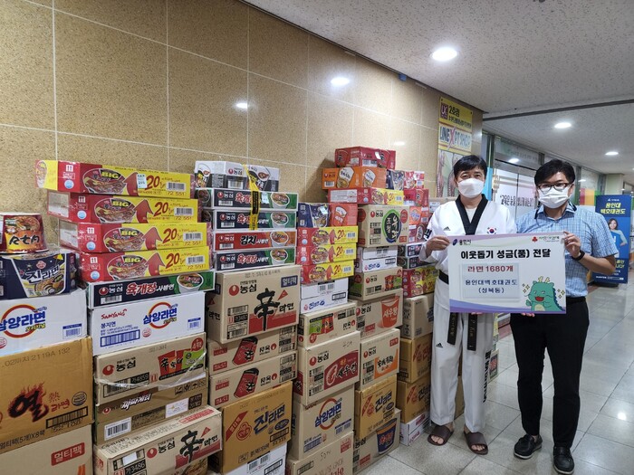 [로컬세계=김병민 기자]경기 용인시 수지구는 용인대 백호태권도장 김종필 관장이 22일 어려운 이웃들에게 전해달라며 라면 1680개를 기탁했다고 밝혔다.