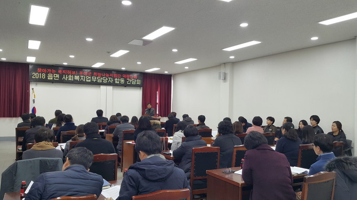 복지업무 전반에 대해 정보를 공유한 가운데 군 관계자는 “군민들의 복지를 책임지고 있는 행복의 전도사인 만큼 자긍심을 가지고 함께 노력해 줄 것”을 당부했다.