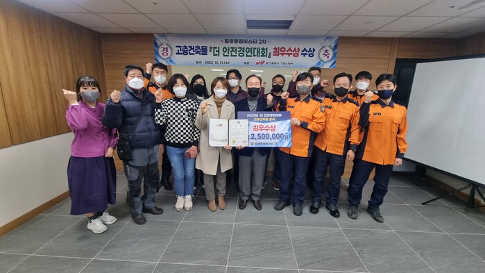 ▲ 기장소방서는 21일 '[2022년 하반기 더안전(Safe)경연대회' 에서 일광동원비스타2차 아파트가 최우수 대상에 선정됐다. 기장소방서 제공 |