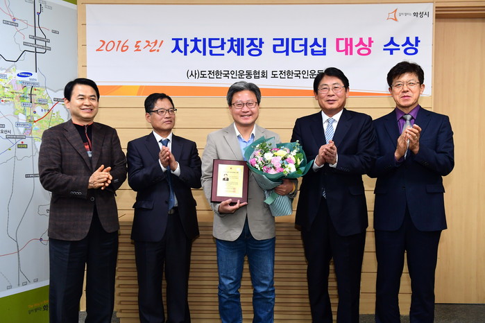 [로컬세계 주덕신 기자]채인석 화성시장이 15일 접견실에서 ‘2016 도전! 자치단체장·지역축제 대상’에서 리더십(지역활성화 부문) 대상을 수상하고 전달식을 가졌다.