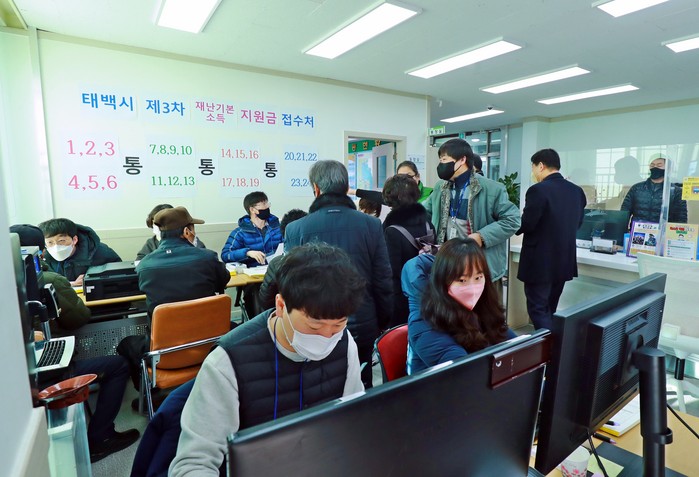 [로컬세계 박상진 기자]류태호 태백시장이 17일 제3차 재난기본소득지원금 현장 접수를 시작함에 따라 8개동 행정복지센터를 찾아 상황을 살폈다.