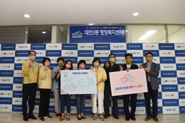 박재범 구청장은 "주민들이 서로 돌보는 따뜻한 마음이 있어 남구가 성장하고 있다며 앞으로 기부자들과의 소통의 장인 ‘당신이 있어 행복한 남구’릴레이를 어어가겠다"고 말했다.