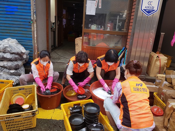의용소방대 대원 20명은 가재도구 세척, 토사제거, 물품정리, 쓰레기 청소 등 자발적인 자원봉사활동으로 수해복구에 힘을 보탰다.