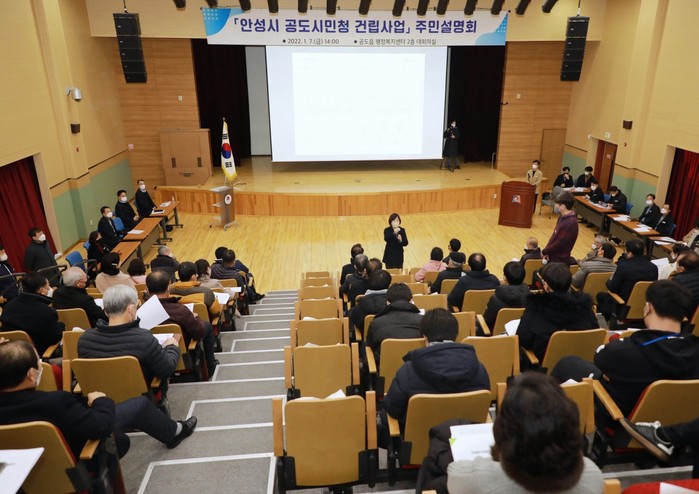 [로컬세계 김병민 기자]경기 안성시는 지난 7일 ‘공도시민청 건축설계(안)’에 대한 주민설명회를 공도읍 기관.사회단체장 및 청소년 등 100여 명이 참석한 가운데 공도읍사무소 행정복지센터 2층 대회의실에서 개최했다고 10일 밝혔다.