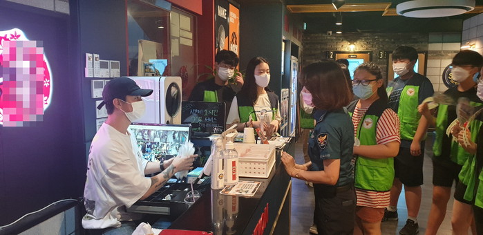 [로컬세계 맹화찬 기자]부산지방경찰청은 19일 서면 및 부전동 일원에서 부산진경찰서·부산YWCA 청소년유해 환경감시단과 함께 코로나 19 예방을 위해 PC방·노래연습장 등을 방문해 최근 확산되고 있는 코로나19 방역활동 및 청소년 선도·보호를 위한 캠페인을 하고 합동순찰도 진행했다.