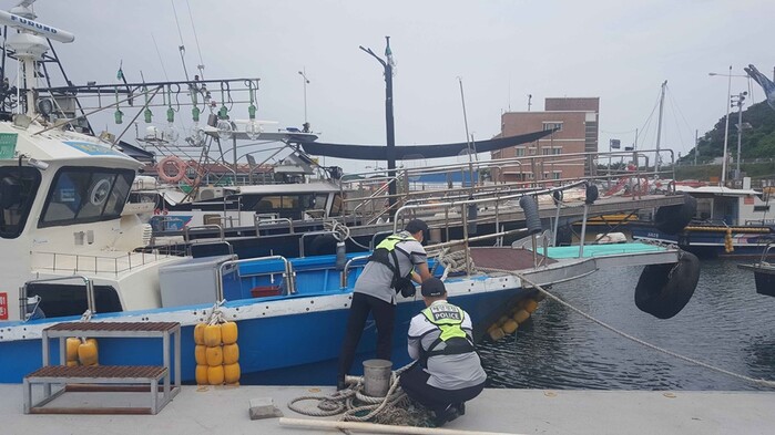 ▲새만금파출소에서 정박선박의 계류상태와 시설물의 안전상태를 점검하고 있다. |