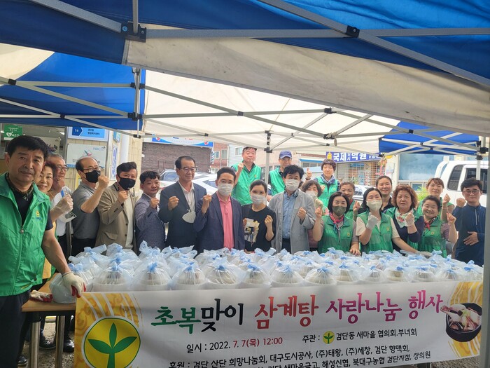 [로컬세계=박세환 기자] 대구 북구 검단동 새마을협의의(회장 안영태)·새마을부녀회(회장 사공정애)는 7일 사랑의 삼계탕 나눔 행사를 가졌다.