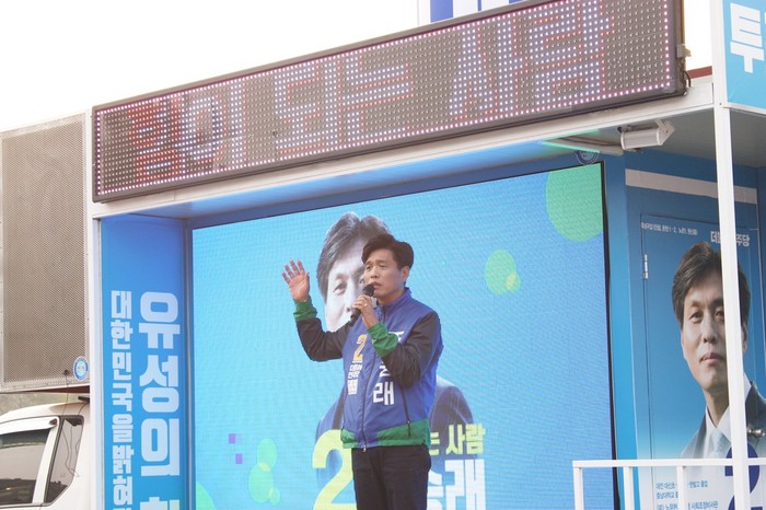 [로컬세계 조윤찬 기자]공식선거운동 마지막 날인 12일 대전 유성갑 더불어민주당 조승래 후보는 골목골목을 누비며 한표를 호소했다.