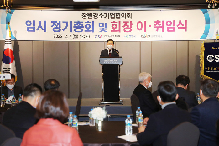 [로컬세계 권인진 기자]경남 창원시는 7일 오후 2시 호텔인터내셔널에서 열린 창원강소기업협의회 이・취임식에 참석해, 지역 강소기업들과의 네트워킹 활동과 교류협력을 통한 동반성장을 도모하며 협의회 회원들과 뜻깊은 시간을 가졌다고 밝혔다.