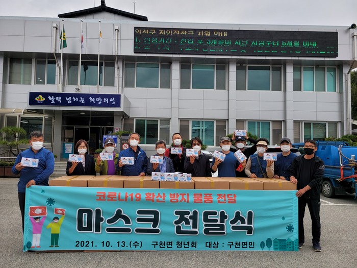 이일로 구천면장은 “코로나19 장기화로 더 힘든 나날을 보내고 있는 이웃을 위해 후원해주신 청년회에 깊은 감사를 드린다”며 “앞으로도 지역사회에 따뜻한 나눔이 확산될 수 있도록 더 힘쓰겠다”고 말했다.