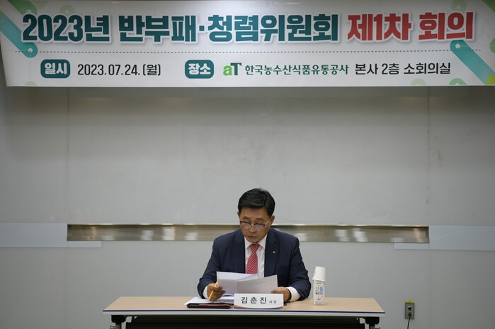 한국농수산식품유통공사(사장 김춘진)는 지난 24일 나주 본사에서 전 임직원의 부패행위 사전 예방과 청렴한 공직문화 조성을 위한 ‘2023년 반부패·청렴위원회 제1차 회의’를 개최했다.