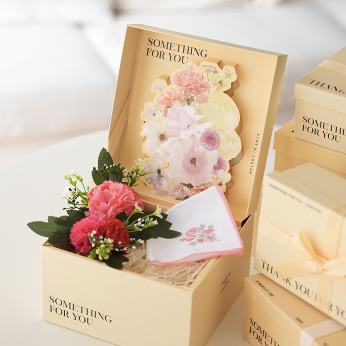 포장용품으로는 연령과 상관없이 활용이 가능한 꽃실사 이미지의 디자인 상품을 선보인다. 뚜껑을 열면 아름다운 꽃 장식이 탐스럽게 피어나는 ‘정사각 팝업 선물 상자’는 선물을 박스에 담으면 화사한 꽃장식이 조심스럽게 감싸준다. 고급스럽고 세련된 금박 레터링 디자인이 선물을 한 층 더 돋보이게 도와준다. ‘플라워 단면 포장지’는 빈티지한 플라워 패턴이 매력적인 단면 포장지로 다양한 색깔 끈이나 리본 등과 함께 조합해 선물이나 박스 포장 뿐만 아니라 꽃다발 포장을 하기에도 좋다.
