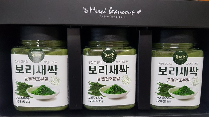 ▲베리앤 기술이전 제품 보리새싹.(고창군 제공) |