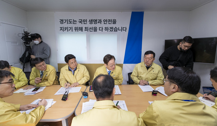 이번 회의는 코로나19 극복 지역경제 활성화를 위해 이 지사가 이천지역을 방문한 가운데 이날 오전 대구·경북지역을 중심으로 확진자가 15명 늘어난 데 따라 지역사회 방역상황을 점검·대비하고자 이뤄졌다.