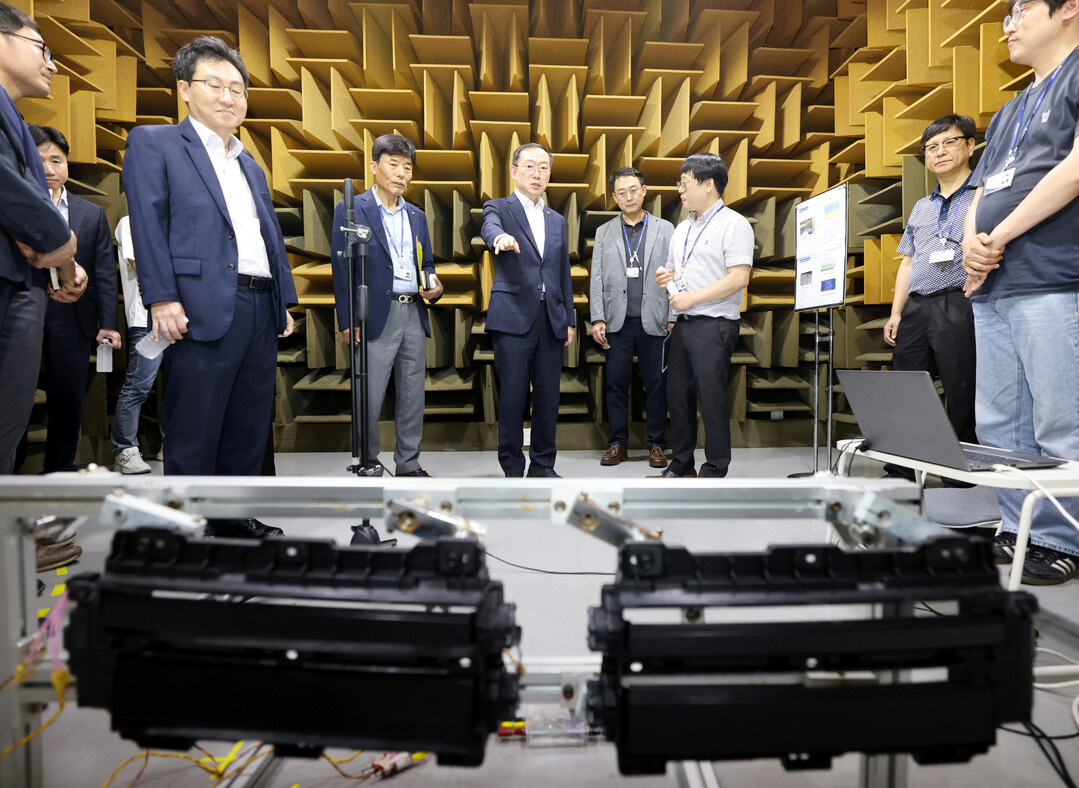 이명구 관세청장(가운데)이 29일, 경북 경산에 소재한 에스엘주식회사를 방문하여 자동차부품 생산 현장을 둘러보고 있다