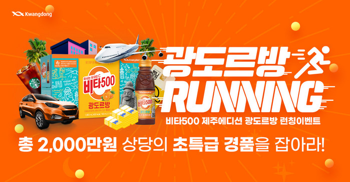 광동제약(대표이사 최성원)은 ‘비타500’의 첫 지역 에디션 ‘비타500 광도르방’ 론칭 기념으로 제주도 주요 관광지와 연계한 ‘광도르방 러닝 이벤트’를 진행한다고 10일 밝혔다.