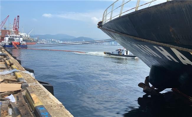 [로컬세계 맹화찬 기자]부산해양경찰서(서장 박형민)는 12일 오전 10시 16분경 감천항 7부두에 계류하고 있던 외국적 선박 A호(화물선, 4,801톤, 벨리즈)가 연료유 수급 중 해상으로 중질유가 유출돼 해경에서 긴급 방제조치를 했다고 밝혔다.