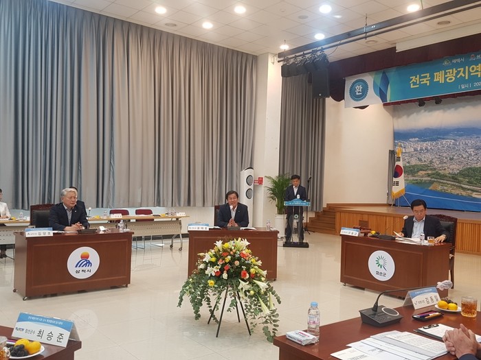 [로컬세계 박상진 기자]류태호 시장은 18일 오후 2시 전남 화순군 대회의실에서 전국 폐광지역 시장·군수 행정협의회(이하 협의회) 임시총회에 참석, '한국광업공단법안'에 대한 폐광지역 7개 시·군의 공동 대응에 관해 논의했다.