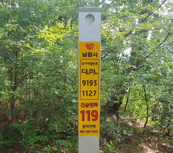 전북 남원시는 올해 시민, 관광객의 왕래가 잦은 지리산둘레길 1코스와 애기봉 및 달봉의 총 29곳에 국가지점번호 안내표지를 설치했다고 16일 밝혔다.