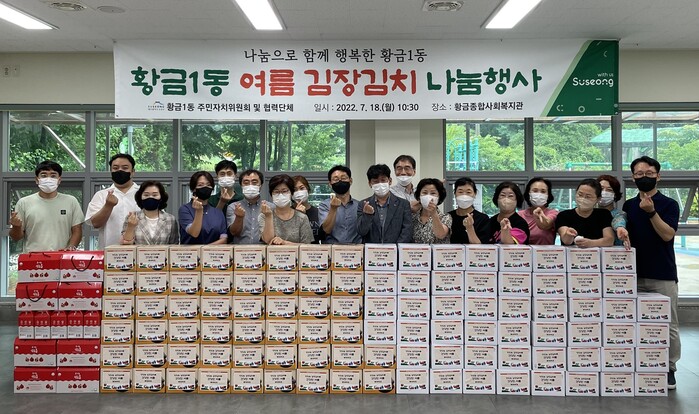 [로컬세계=박세환 기자] 대구 수성구 황금1동 주민자치위원회(위원장 권수용)는 지난 18일 어려운 이웃을 위한 여름 김장김치 500kg(200만원 상당)을 나누는 행사를 가졌다.