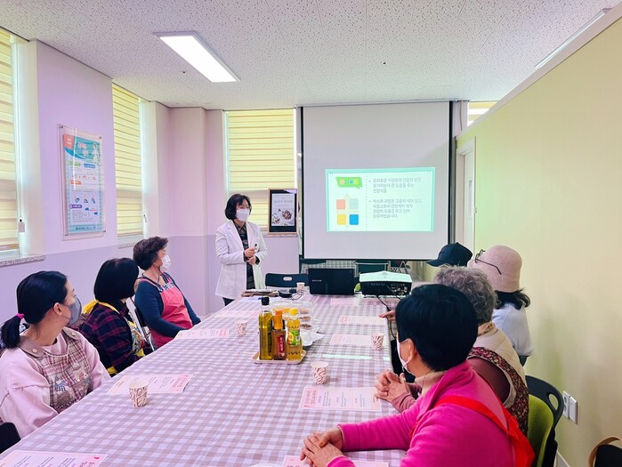 | ▲ ‘슬기로운 채소생활’ 프로그램에서 영양사가 컬러 푸드 강의를 하고 있다. 고양시 제공 |